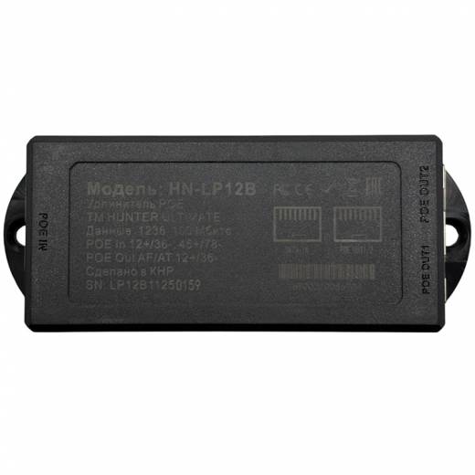 HN-LP12B – удлинитель-разветвитель POE предназначен для увеличения расстояния передачи электропитания и данных через стандартный Ethernet кабель (UTP cat5e). Поддерживает PoE стандарта IEEE802.3af/at и позволяет удлинить PoE линию на 250 метров (в режиме VLAN) для двух устройств с мощность потребления оконечными устройствами суммарно до 30 Вт. Позволяет значительно экономить на прокладке кабельной линий связи (нет необходимости протягивать линию связи до каждого устройства отдельно).