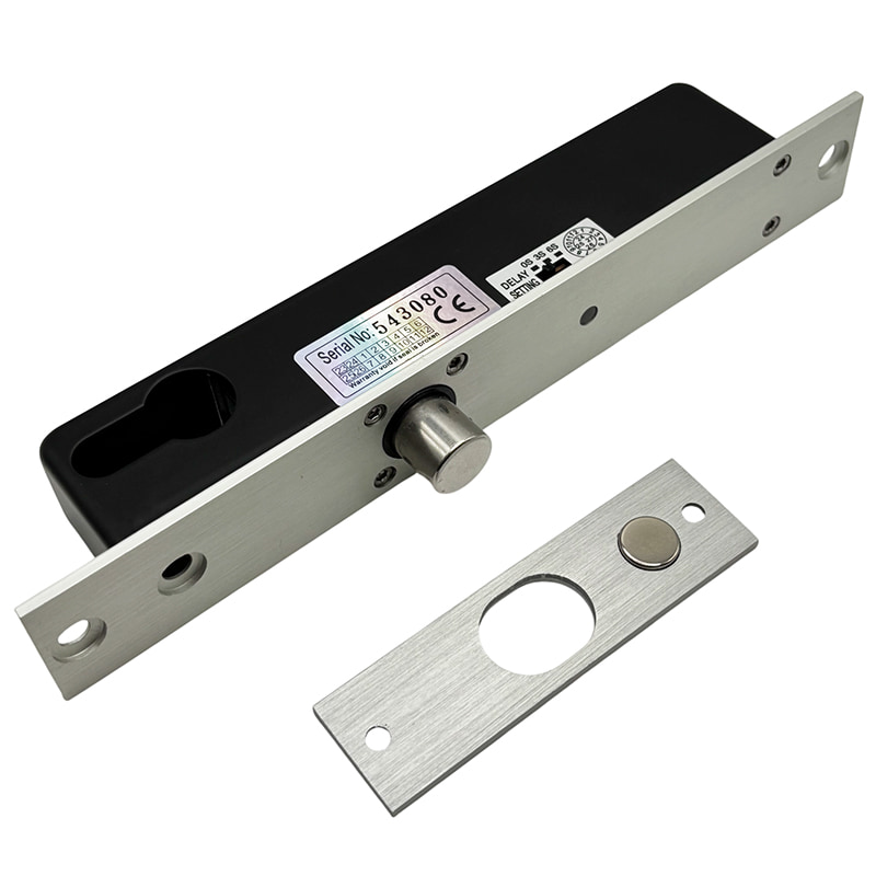 Замок HN-B168 оснащен встроенным датчиком положения двери и регулируемым таймером задержки запирания 0, 3 или 6 секунд. Может использоваться для дверей, открывающихся внутрь, открывающихся наружу и маятниковых.