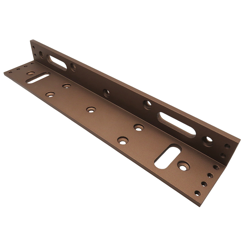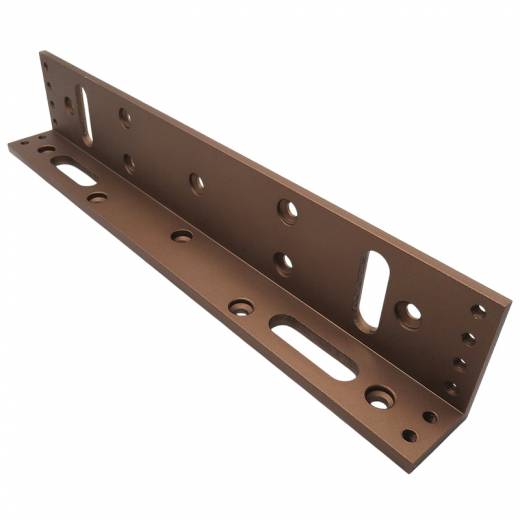 HN-L280 (бронза) – L-образный монтажный уголок для крепления электромагнитного замка HN-M280 (бронза). Предназначен для установки замка на вертикальную поверхность дверной коробки или рамы в тех случаях, когда горизонтальное крепление невозможно или неудобно. Уголок выполнен из прочного металла с декоративным покрытием «бронза», что обеспечивает антикоррозийную защиту и гармоничное сочетание с замком HN-M280 в цвете бронза. Благодаря L-образной форме уголок надёжно фиксирует замок, сохраняя строго перпендикулярное положение относительно притягиваемой пластины, что гарантирует максимальную силу удержания.