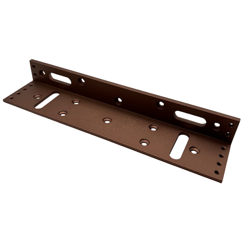 HN-L350 (бронза) – L-образный монтажный уголок для крепления электромагнитного замка HN-M350 (бронза). Предназначен для установки замка на вертикальную поверхность дверной коробки или рамы в тех случаях, когда горизонтальное крепление невозможно или неудобно. Уголок выполнен из прочного металла с декоративным покрытием «бронза», что обеспечивает антикоррозийную защиту и гармоничное сочетание с замком HN-M350 в цвете бронза. Благодаря L-образной форме уголок надёжно фиксирует замок, сохраняя строго перпендикулярное положение относительно притягиваемой пластины, что гарантирует максимальную силу удержания.